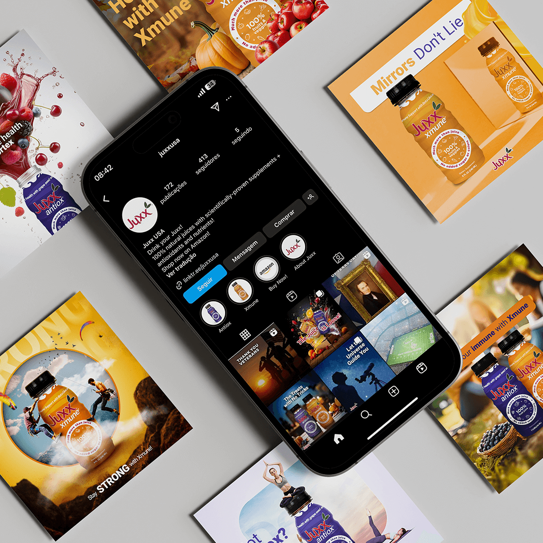 Tivemos o desafio de apresentar a marca, já consolidada no Brasil desde 2007, ao mercado dos Estados Unidos. Desenvolvemos estratégias de marketing e conteúdo com o apoio de uma equipe de copywriting sediada nos EUA. Lançamos um novo site, plataforma de e-commerce, novos canais nas redes sociais e embalagens específicas para o país, tudo promovido por meio de tráfego pago com segmentação geográfica. Além dos esforços digitais, criamos materiais promocionais para eventos a fim de fortalecer a marca nos pontos de venda, e seguimos acompanhando de perto os resultados. Desejamos muito sucesso à Juxx nesta nova jornada!